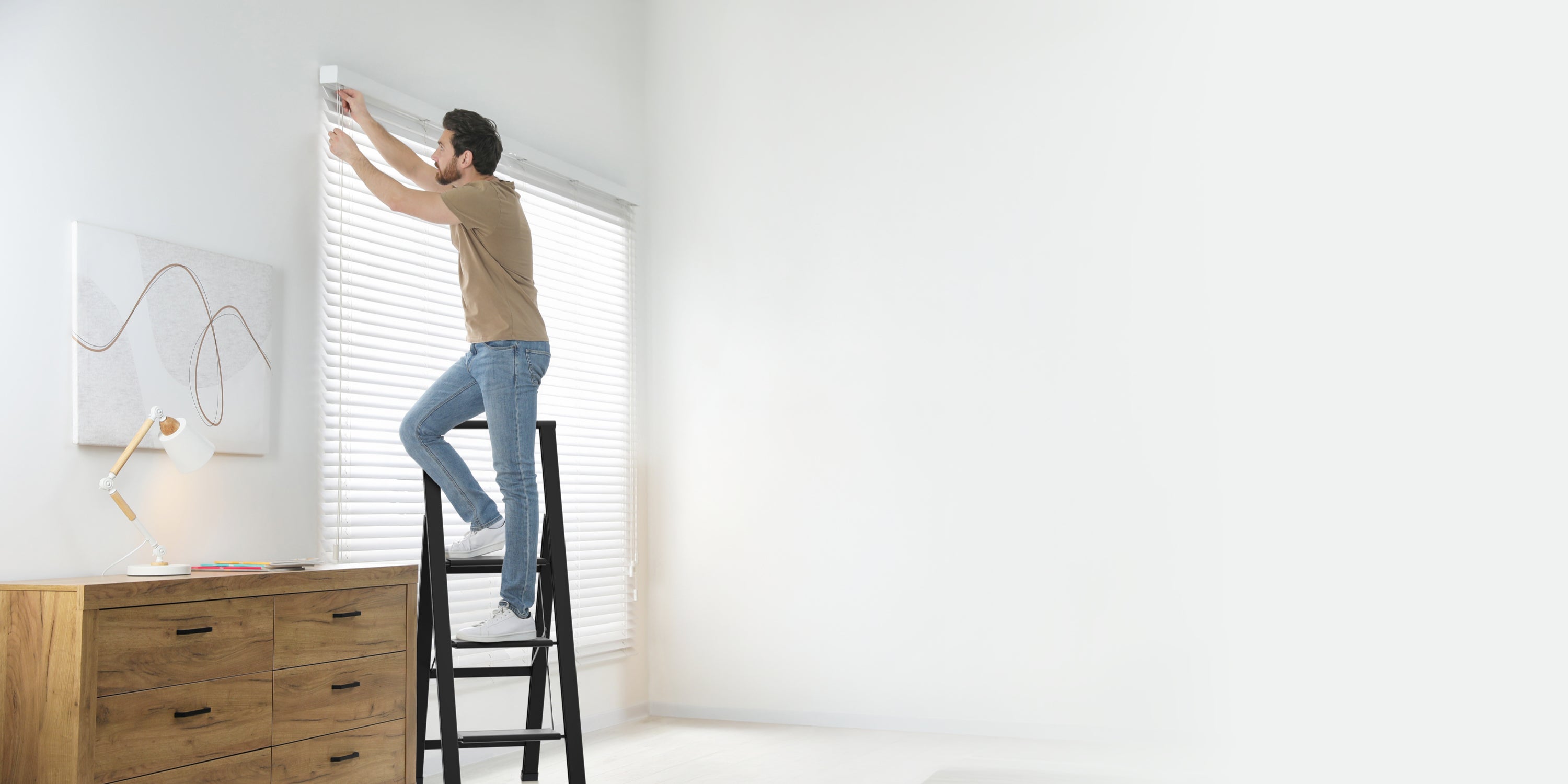 Bamboo Step Ladder | Black Aluminum